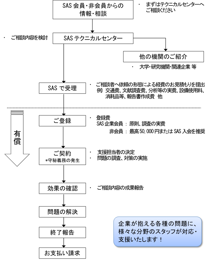 ご相談フォームまたは下記の相談事項連絡票に必要事項をご記入いただき、SASテクニカルセンターまでお送り下さい。